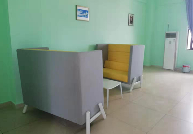 个体咨询室是心理老师与来访者进行一对一面谈和咨询的场所。金太阳实验中学的个体咨询室整体环境安静舒适,采用淡绿色的色彩装饰,给人一种简洁安全的感觉,利于来访者放下心理负担、敞开心扉。同时,心理老师和来访者的座位呈L形摆放,这样避免了面对面交谈产生的压迫感,拉近了来访者和心理老师之间的距离,同时也兼顾了眼神交流,便于心理老师了解来访者的内心世界。